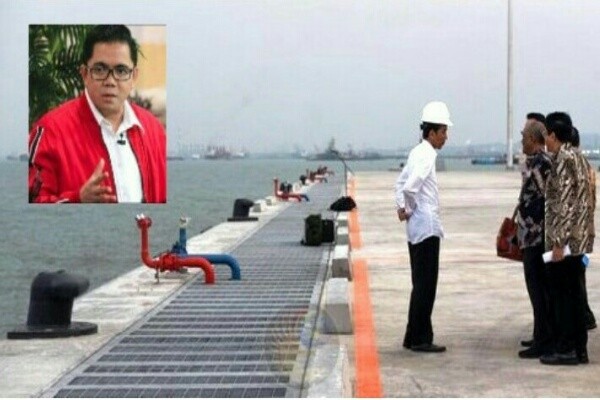 Presiden Jokowi saat menghadiri lokasi Pelabuhan Internasional JIIPE Gresik yang mencanangkan sebagai proyek strategis nasional. Insert Arteria Dahlan Anggota Komisi III DPR RI.( gambar bawah).