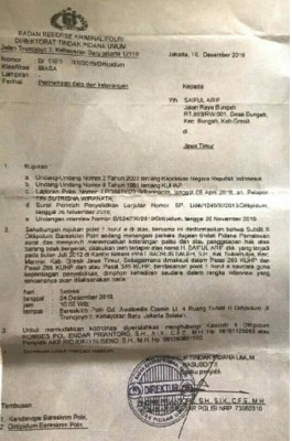 Sebagaimana di maksud dalam laporan tersebut disangkakan Pasal 263 KUHP dan Pasal 266 KUHP dan Pasal 385 KUHP, Guna kepentingan Penyelidikan telah dimintai Keterangan yang dilakukan pada pada Kamis 23 Mei 2019 di ruang Ditreskrim Polda Jawa Timur.