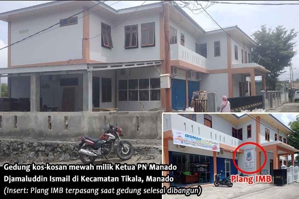 Fenomena sim salabim abrakadabra IMB yang serta-merta terpasang di gedung setelah kelar ( usai ) dibangun itu hanya terjadi dan boleh berlaku pada bangunan gedung kos-kosan mewah milik hamba hukum yakni Ketua PN Manado, Djamaluddin Ismail, SH, MH,tidak berlaku bagi rakyat kecil, Djamaluddin memang seorang hakim yang hebat!