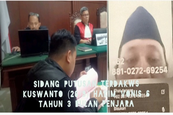 Terhadap putusan ini, terdakwa Kuswanto menyatakan terima, Sedangkan Jaksa diwakili Yustus menyatakan pikir-pikir.